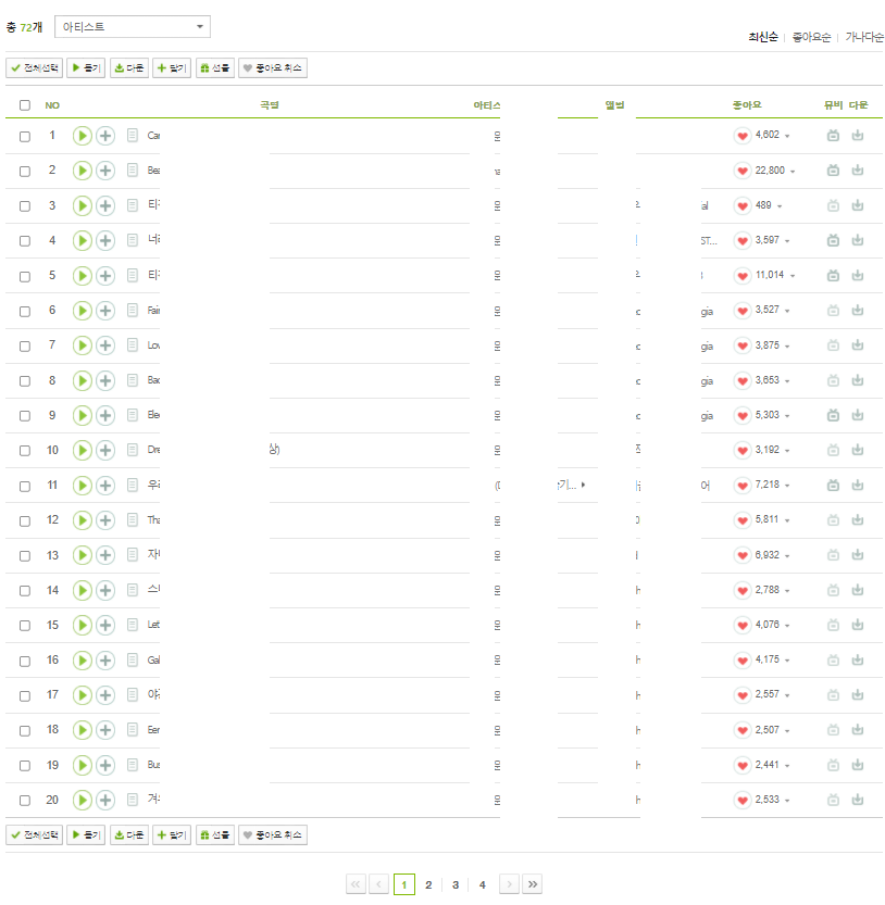 아무리 광팬이래도.. 다른 가수 하나 안듣고 좋아요 한번 안누르고 72개만 한 가수만 고른다고?